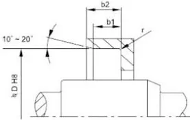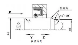 2. Besisukančio veleno ir griovelių konstrukcija: veleno paviršius turi būti lygus ir be įbrėžimų. Spiralinio apdirbimo žymės gali sukurti siurbimo efektą, dėl kurio gali nutekėti. Alyvos sandariklio montavimo vietą rekomenduojama nušlifuoti iki Ra0,1–0,5 µm paviršiaus šiurkštumo, kuris didėjant greičiui tampa lygesnis. Kad būtų lengviau montuoti ir išardyti, velenas ir grioveliai turi būti su nuožulniais arba užapvalintais kraštais Žr. 1 ir 2 paveikslus.